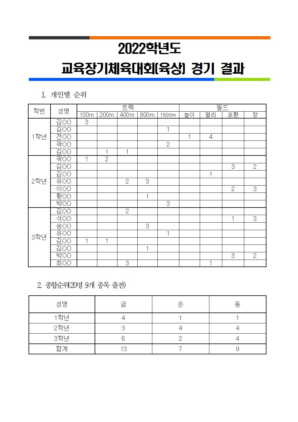 지난 10월 5일(수) 합천군민공설운동장에서 2022학년도 교육장기 육상대회가 개최되었습니다.